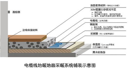 Halmburger地板电采暖系统是以电力为能源,发热电缆为发热体,将95%以上的电能转换为热能,并以建筑物内部地面作为散热面,通过对流换热加热周围空气的同时,还向四周的维护结构进行辐射换热,保障建筑物的室温达到舒适要求。